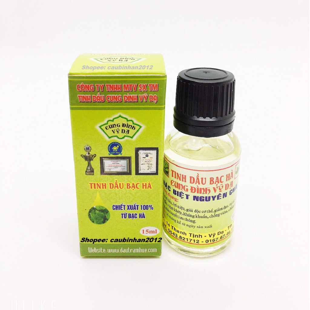️1, Tinh dầu bạc hà cung đình vỹ dạ Huế nguyên chất 100% nổi tiếng trong đời sống hàng ngày với những công dụng tuyệt vời dành cho sức khoẻ và làm đẹp. Nhưng bạn có chắc là mình đã tận dụng hết các lợi ích đó? - Chăm sóc da và móng tay: Tinh dầu bạc hà có công dụng rất tốt trong việc diệt khuẩn và ngăn ngừa mụn trứng cá. Với việc làm se khít lỗ chân lông, sử dụng tinh dầu bạc hà còn cải thiện làn da sáng khoẻ, chậm quá trình lão hoá và làm sạch các tế bào chết trên da. Còn với móng tay, nhờ công dụng kháng viêm, diệt khuẩn từ bạc hà sẽ loại bỏ các vi khuẩn giúp da tay và đầu móng được thư giãn. - Chăm sóc tóc và da đầu: Trở về sau một ngày làm việc mệt mỏi, gội đầu với tinh dầu bạc hà khiến bạn có cảm giác mát mẻ, sảng khoái tinh thần. Đặc tính the mát của bạc hà sẽ giúp bạn thư giãn đầu óc thoải mái, kích thích quá trình mọc tóc, giảm ngứa da đầu và ngăn ngừa gàu phát triển. Mái tóc của bạn sẽ trở nên chắc khoẻ, bóng mượt hơn bao giờ hết. - Chăm sóc răng miệng: Bạc hà là mùi hương phổ biến trong các loại thuốc đánh răng bởi đặc tính the mát và sảng khoái tinh thần. Sử dụng tinh dầu bạc hà sẽ có kết quả tốt hơn kem đánh răng thông thường vì dầu bạc hà có thể diệt các loại vi khuẩn kỵ khí sống trong miệng. - Khắc phục bệnh hô hấp: Thời điểm giao mùa thường khiến cơ thể uể oải, khó thở dẫn đến tình trạng hô hấp không đều. Ngoài những cách thông thường như uống thuốc, giữ ấm cơ thể thì tinh dầu bạc hà cũng có thể hỗ trợ khắc phục bệnh hô hấp. Trong tinh dầu chứa các hoạt chất đặc biệt có tác dụng trong việc điều trị các bệnh liên quan đường hô hấp như ho, hen suyễn, cảm cúm… Hít trực tiếp tinh dầu hoặc để nó khuếch tán trong không gian là cách trị bệnh hô hấp hiệu quả và tiết kiệm thời gian. - Dùng đèn xông hương thơm- Cải thiện tinh thần hiệu quả: Nhỏ vài giọt Tinh dầu bạc hà cung đình vỹ dạ Huế nguyên chất 100% vào đèn xông hương tinh dầu để hương thơm khuếch tán giúp phòng ngừa bệnh đường hô hấp, thanh lọc không khí đem lại cho bạn một không gian thư giãn và yên bình. 2, Ngày sản xuất: In trên vỏ hộp. 3, Hạn sử dụng: 3 năm kể từ ngày sản xuất. 4, Sản xuất bởi: Công ty TNHH một thành viên Sản Xuất thương mại tinh dầu Cung đình Vỹ Dạ. 5, Dung tích: 15ml. 6, Bảo quản: Nơi khô ráo thoáng mát. 7, Khuyến cáo: để xa tầm tay trẻ em. Mời quý khách đặt hàng Tinh dầu bạc hà cung đình vỹ dạ Huế nguyên chất 100% ạ <3 <3 <3 #tinhdau #tinh_dầu #tinhdauthiennhien #tinhdaunguyenchat #denxongtinhdau #tinhdauduoimuoi #tinhdauxongphong #tinhdầuxôngphòng #tinhdầuthiênnhiên #đènxôngtinhdầu #tinhdầutựnhiên #máykhuếchtántinhdầu #đènxông #tinhdầuxông #tinhdaubacha #caubinhan #tinh_dầu_bạc_hà #bạc_hà