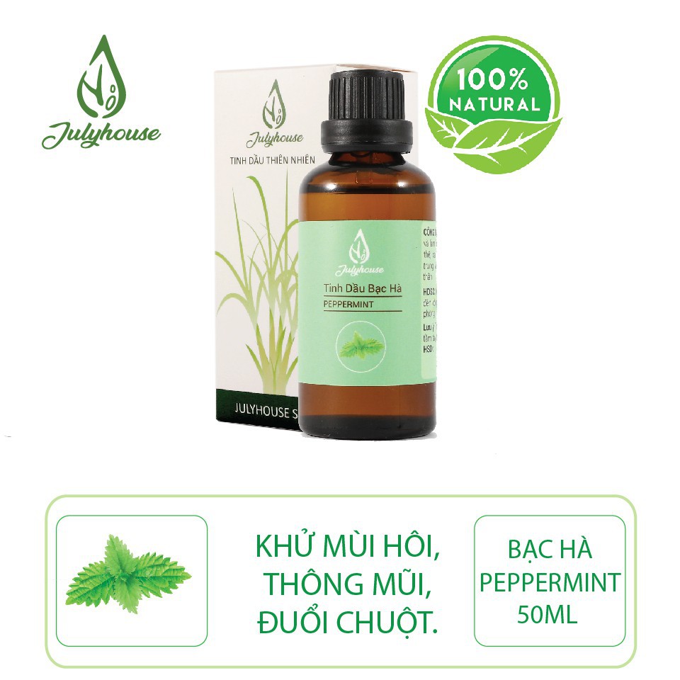️Tinh dầu Bạc Hà Julyhouse Mô tả sản phẩm Tinh dầu Bạc hà Julyhouse • Thành phần: 100% tinh dầu được chiết từ thân và lá Bạc hà, không chất tạo mùi, hàm lượng methol lên đến 70%. • Không chất bảo quản, không chất tạo màu, tạo mùi. • Xuất xứ: Việt Nam. • Qui cách: Lọ 50ml. Công dụng và hướng dẫn sử dụng Tinh dầu Bạc hà Julyhouse: • Giảm các triệu chứng của dị ứng: - Dị ứng với phấn hoa: khuếch tán tinh dầu bạc hà + tinh dầu đinh hương bằng máy khuếch tán hoặc đèn đốt tinh dầu, giúp thư giãn các cơ mũi và làm sạch phấn hoa. - Ngứa do dị ứng: Tương tự với cách sử dụng trên kết hợp 2 loại tinh dầu bạc hà và tinh dầu oải hương giúp làm giảm cơn ngứa. • Giảm đau nhức xương khớp: Thay vì sử dụng túi chườm đá để giảm đau nhức xương khớp, có thể trộn tinh dầu bạc hà và tinh dầu oải hương theo tỷ lệ 1:1, massage nhẹ nhàng vào các khớp giúp giảm cơn nhức, đồng thời giữ ấm và khô. • Trị bệnh hiệu quả: - Thuốc hạ sốt: cho vào lòng bàn tay cùng một lượng tinh dầu bạc hà và dầu dừa, sau đó xoa nhẹ nhàng vào cổ và lòng bàn chân của trẻ em, giúp làm giảm cơn sốt thay cho thuốc aspirin. - Giải cảm, ho, đau đầu: cho 1-3 giọt tinh dầu bạc hà vào chậu nước nóng và xông hơi trong khỏang 10 phút. Thành phần methol và 1,8 cineole có trong tinh dầu giúp khắc phục nhanh chóng các bệnh liên quan đến đường hô hấp. • Giải quyết các vấn đề về tóc: Vào buổi sáng, sử dụng 2-3 giọt tinh dầu bạc hà cho vào dầu gội đầu. Hương thơm the mát trong tinh dầu giúp kích thích não hoạt động hiệu quả, đồng thời tính sát khuẩn của bạc hà giúp giải quyết các vấn đề về da đầu như gàu, dầu nhờn, rận và nuôi dưỡng tóc chắc khỏe. • Đuổi muỗi, chuột vô cùng hiệu quả: - Thường xuyên khuếch tán tinh dầu bạc hà bằng máy hoặc bằng bình xịt vào những nơi nhiều muỗi. - Để đuổi chuột, dùng tinh dầu bạc hà nguyên chất tẩm vào một miếng mút, sau đó đặt vào nơi chuột hay bò qua. • Chống buồn nôn, say xe: Cho 1 giọt tinh dầu bạc hà vào lòng bàn tay, xoa nhẹ, sau đó hít thở đều trong khoảng 1 phút hoặc có thể bôi tinh dầu ở mang tai, cổ để giảm say xe. • Giúp hơi thở thơm mát: Cho 1-2 giọt tinh dầu bạc hà vào cốc nước ấm, dùng hỗn hợp này súc miệng, giúp làm sạch khoang miệng, giảm sâu răng và tạo hơi thở thơm mát. Lưu ý: - Để xa tầm tay trẻ em. - Không sử dụng trực tiếp để uống và thoa vào các vết thương hở. - Nếu vô tình làm vấy vào mắt, nhanh chóng rửa sạch và gặp bác sĩ để tư vấn chữa trị. - Lưu ý sản phẩm không thể thay thế thuốc chữa bệnh. Bảo quản: nơi khô ráo, thóang mát. Tránh tiếp xúc trực tiếp với ánh sáng. #tinhdầu #tinhdaubacha #bacha #tinhdau #tinhdầutắm #xôngphòng #tinhdầuxông #julyhouse