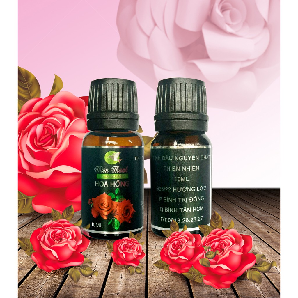 ️Tinh dầu hoa hồng Thiên Thanh với Mùi hương ngọt ngào, sang trọng, quyến rũ và huyền bí,… Sơ lược về tinh dầu hoa hồng: - Tinh dầu hoa hồng được chiết xuất hoàn toàn tinh khiết từ cánh của những bông hoa hồng, tinh dầu hoa hồng không những làm đẹp da mà nó còn được đưa vào các liệu pháp chăm sóc sức khỏe rất nhiều tại các tổ chức chăm sóc sức khỏe trên thế giới. - Tinh dầu hoa hồng chống thâm da do sẹo để lại và làm ẩm da, dưỡng và bảo vệ da, thường được sử dụng để pha chế vào các loại kem dưỡng da mặt và body. - Ngoài ra, hoa hồng được biết đến với nhiều tác dụng chữa bệnh như: cân bằng hocmon trong quá trình kinh nguyệt, bị cảm lạnh, căng thẳng, hay bị xúc động, lo lắng và hồi hộp, giải độc và tuần hoàn hệ thần kinh. Công dụng: Tinh dầu Hoa Hồng nổi tiếng trong việc chống trầm cảm, kích thích gợi tình. Làm giảm sự lo lắng, giảm sốt, khó tiêu, mất nước, tăng sức đề kháng. Khi massage sẽ giúp thúc đẩy lưu thông máu, giảm đau đầu,viêm loét dạ dày, giúp nhuận tràng. Giúp điều hòa kinh nguyệt, hỗ trợ trong việc điều trị bệnh máu khó đông. Ngoài ra Tinh Dầu Hoa Hồng là loại tinh dầu tốt trong việc chăm sóc da, cho bạn làn da tươi sáng, làm mờ vết thâm, sẹo do mụn để lại. Có thể kết hợp với tinh dầu Đinh hương, Chi mỏ hạc.. Hướng Dẫn Sử Dụng Cách sử dụng tối ưu vẫn là cho vài giọt tinh dầu vào nước ấm rồi đặt trên ngọn lửa của nến tealight. Cách này sẽ giúp mùi hương của tinh dầu được khuếch tán khắp căn phòng đều hơn và nhanh hơn. Lưu ý khi sử dụng Mọi thông tin mang tính chất tham khảo Tránh để lọ tinh dầu tiếp xúc trực tiếp với ánh nắng mặt trời . Tốt nên bảo quản ở môi trường phòng ( 30-35 độ C ) Không thoa trực tiếp lên da Để xa tầm tay trẻ em