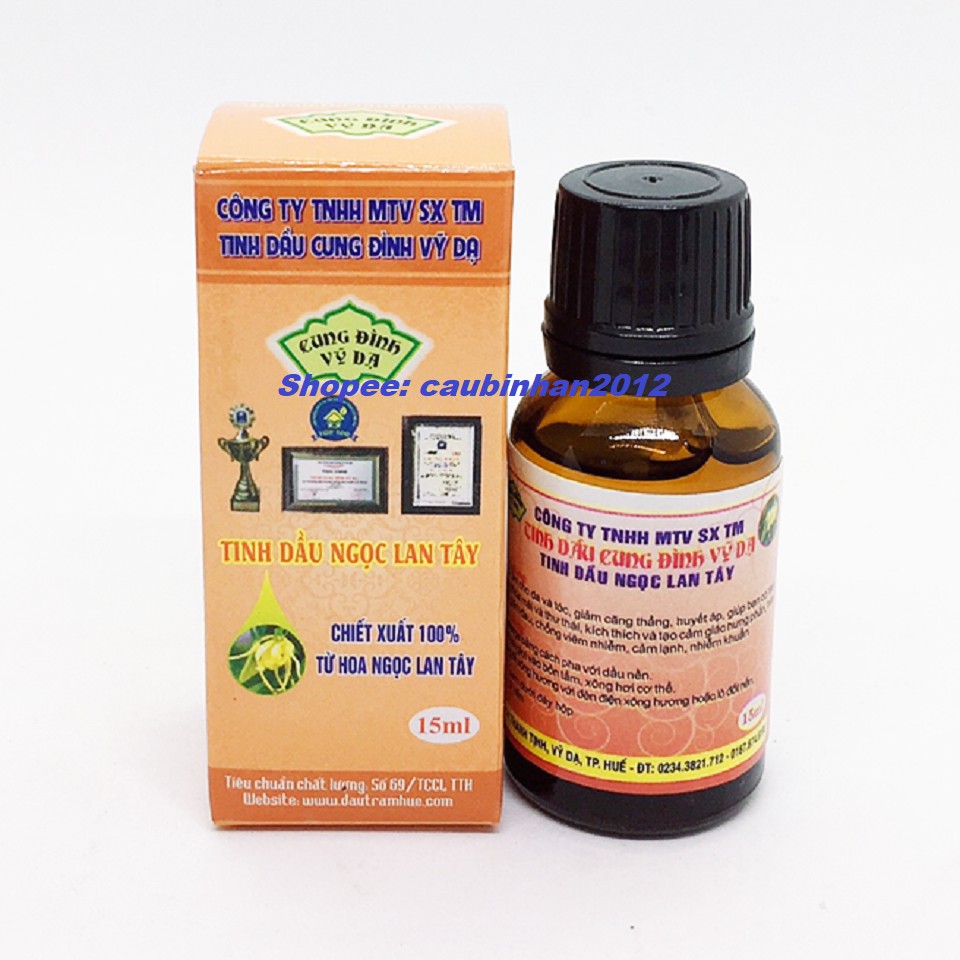 ️Tinh dầu Ngọc Lan Tây cung đình vỹ dạ Huế nguyên chất 100%: 1, Công dụng Tinh dầu Ngọc Lan Tây Cung Đình Vỹ Dạ Huế: – Giúp thư giãn, chống trầm cảm, mệt mọi, mất ngủ; chống viêm nhiễm, nhiễm khuẩn, cảm lạnh; kích thích và tạo cảm giác hưng phấn. Massage với tinh dầu ngọc lan là một liệu pháp tuyệt vời sau một ngày làm việc mệt mỏi và áp lực. – Đối với làn da, tinh dầu ngọc lan giúp kiểm soát chất nhờn, làm se lỗ chân lông, khi dùng kết hợp với tinh dầu hoa hồng và sen sẽ làm da mịn màng, trắng hồng, giảm mụn nhọt. – Ngoài ra tinh dầu ngọc lan tây còn được dùng trong hỗ trợ điều trị huyết áp cao. 2, Cách dùng Tinh dầu Ngọc Lan Tây Cung Đình Vỹ Dạ: – Cho vài giọt vào đèn xông để giải tỏa lo âu, căng thẳng, stress, trầm cảm và khắc phục tình trạng tim đập nhanh, hơi thở gấp có thể kết hợp với tinh dầu oải hương, tinh dầu hoa hồng, tinh dầu phong lữ. – Một vài giọt ngọc lan tây, oải hương, tràm trà: nhỏ vào bát nước ấm sau đó dùng xông mặt giúp giảm da nhờn, chống lão hóa da, tăng khả năng tái tạo da, trống nhiễm khuẩn, phòng ngừa mụn trứng cá, hoặc nhỏ vào chậu nước tắm. – Mát-xa dưỡng ẩm và làm trắng mịn da: kết hợp tinh dầu ngọc lan tây với dầu thực vật như dầu Dừa, dầu Ôliu, dầu Jojoba, … theo tỷ lệ 1/30 (3%) sẽ có một lọ dầu dưỡng da thiên nhiên để dưỡng ẩm và làm trắng da. – Để giảm chứng hồi hộp hay tim đập nhanh, giảm đau đầu pha hỗn hợp sau : 6 giọt ngọc lan tây + 1 giọt oải hương + 1 giọt tinh dầu cam ngọt, thêm 30g dầu Olive hoặc dầu massage và xoa vào ngực. – Masage cho chống lão hóa và làm đẹp da: 30ml dầu Jojoba + 30ml dầu Hạnh Nhân + 25 giọt tinh dầu Oải Hương + 6 giọt tinh dầu Hoa Hồng + 6 giọt tinh dầu Ngọc Lan Tây. 1 giọt tinh dầu Oải Hương + 1 giọt tinh dầu Phong Lữ + 1 giọt tinh dầu Ngọc Lan Tây ( + 5ml dầu nền ), giúp tăng hứng phấn trong phòng the. 3, Lưu ý sử dụng tinh dầu Ngọc Lan Tây: – Không uống trực tiếp, không bôi trực tiếp tinh dầu lên da, không để rớt vào mắt. – Tránh ánh sáng mặt trời trực tiếp, để xa tầm tay trẻ em. – Nên mua tinh dầu có thương hiệu rõ ràng, và kiểm tra chất lượng kỹ trước khi sử dụng tránh trường hợp dùng phải dầu đã pha chế với hóa chất. 4, Ngày sản xuất: In trên vỏ hộp. 5, Hạn sử dụng: 3 năm kể từ ngày sản xuất. 6, Sản xuất bởi: Công ty TNHH một thành viên Sản Xuất thương mại tinh dầu Cung Đình Vỹ Dạ. 7, Dung tích: 15ml. 8, Bảo quản: Nơi khô ráo thoáng mát. 9, Khuyến cáo: Để xa tầm tay trẻ em. Kính mời quý khách đặt hàng tinh dầu ngọc lan tây cung đình vỹ dạ huế nguyên chất 100% ạ. #tinhdau #tinh_dầu #tinhdauthiennhien #tinhdaunguyenchat #denxongtinhdau #tinhdauduoimuoi #tinhdauxongphong #tinhdầuthiênnhiên #đènxôngtinhdầu #tinhdầutựnhiên #đènxông #tinhdầuxông #tinhdaungoclantay #tinhdauhoalan #tinh_dầu_ngọc_lan_tây #hoalan #cung_đình_vỹ_dạ #cungdinhvyda