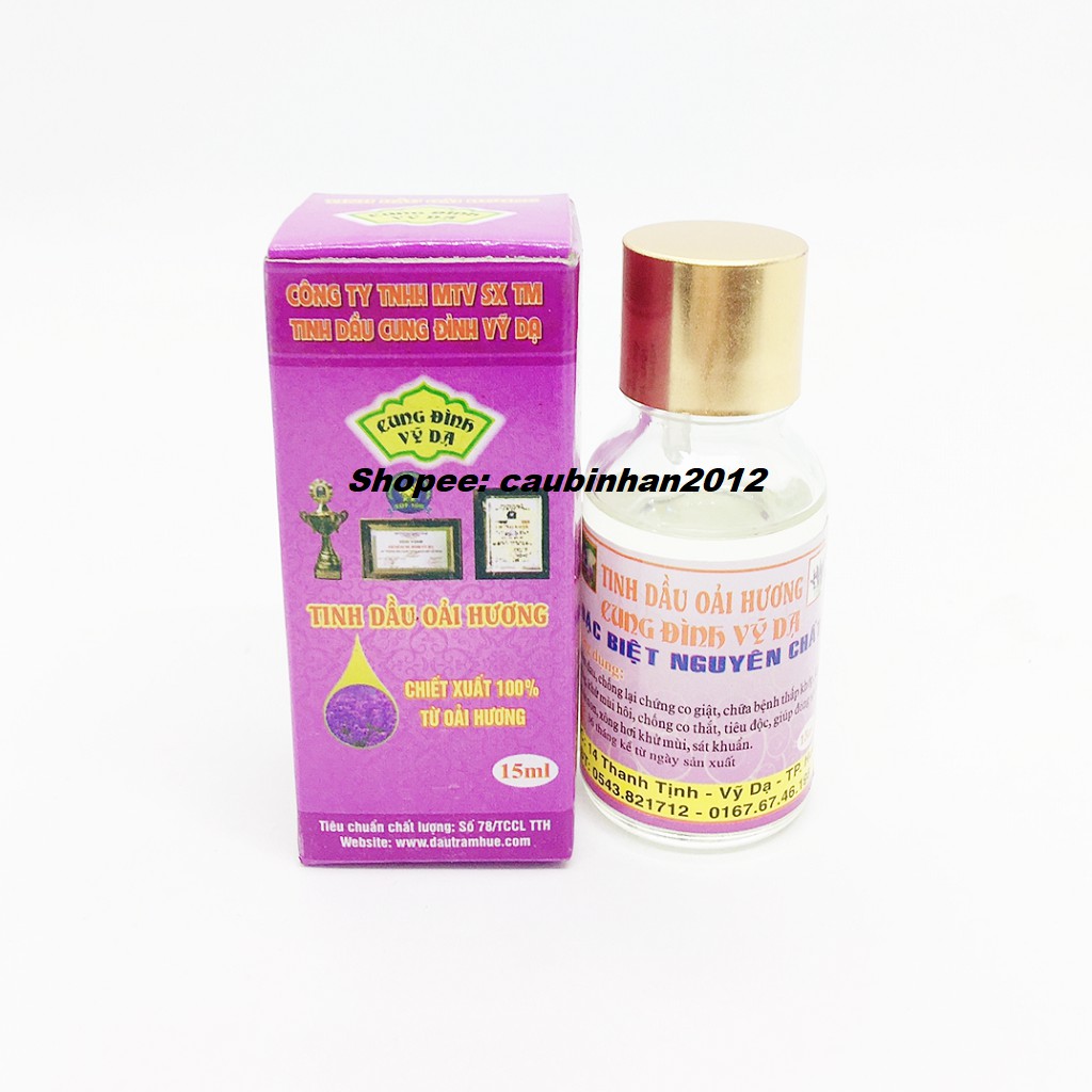 ️Tinh dầu Oải Hương Cung đình Vỹ dạ Huế Nguyên chất 100%: 1, Thành phần: Chiết xuất hoàn toàn từ hoa Oải Hương hữu cơ. 2, Công dụng của Tinh dầu oải hương Cung đình Vỹ dạ: - Tinh dầu hoa oải hương là một loại tinh dầu được dùng khá phổ biến. Đặc tính tự nhiên của loại tinh dầu này là giảm đau, chống co giật, sát trùng, chống viêm…. - Những khi đau nhức đầu, chân tay hay cơ thể bạn cũng có thể dùng nó như một loại dầu gió. Những trường hợp bị bỏng hay bị côn trùng cắn thì tinh dầu oải hương là sự lựa chọn an toàn và tốt nhất. Nhỏ khoảng 2 giọt tinh dầu vào chỗ vết thương hoặc pha 5 giọt tinh dầu với dầu dẫn (dầu oliu, dầu hạnh nhân…) để bôi lên chỗ da đó. Oải hương vốn có khả năng làm lành vết thương khá nhanh, đặc biệt là không để lại sẹo cho người dùng. - Hoặc nếu bị bệnh ngoài da thì bạn cũng có thể dùng từ 5-10 giọt tinh dầu oải hương pha với nước tắm rồi ngâm mình trong đó khoảng 10 phút, sau một thời gian sẽ thấy sự thay đổi tích cực trên da của bạn. - Vì là một chất chống viêm tự nhiên nên tinh dầu oải hương giúp làm giảm ngứa, sưng và đỏ do da bị cháy nắng gây ra. Dùng gạc thoa tinh dầu đã pha với nước lạnh lên phần da bị cháy nắng để những vết này nhanh lành lại. - Ngoài ra, tinh dầu hoa oải hương còn có thể trị mụn trứng cá hiệu quả và làm mặt nạ tẩy tế bào chết, mặt nạ chống nhăn và mặt nạ làm sạch cho da. Với phương pháp trị mụn bằng tinh dầu hoa oải hương, bạn bôi trực tiếp nó lên chỗ có mụn và da bị nhiễm trùng, 2 lần một ngày. Đắp mặt nạ sữa chua không đường trộn với vài giọt tinh dầu sẽ giúp da chống lại vi khuẩn gây mụn và tăng cường trẻ hóa các tế bào. Hoặc dùng lòng trắng trứng trộn với 3 giọt tinh dầu hoa oải hương đắp lên mặt 20 phút thì những nếp nhăn trên da cũng sẽ mất đi nhanh chóng. - Tinh dầu hoa oải hương còn giúp trị những cơn mất ngủ, mang đến cho bạn một giấc ngủ ngon và sâu hơn. Với người lớn thì có thể dùng 2-3 giọt tinh dầu rồi thoa lên thái dương, trán và sau gáy rồi xoa bóp nhẹ nhàng. Với trẻ em hoặc những người có làn da mẫn cảm thì có thể nhỏ một vài giọt tinh dầu vào gối hoặc đầu giường để thưởng thức hương thơm của tinh dầu. 3, Ngày sản xuất: In trên vỏ hộp. 4, Hạn sử dụng: 3 năm kể từ ngày sản xuất. 5, Sản xuất bởi: Công ty TNHH một thành viên Sản Xuất thương mại tinh dầu Cung Đình Vỹ Dạ. 6, Dung tích: 15ml. 7, Bảo quản: Cũng như cách bảo quản các loại tinh dầu khác, không để tinh dầu oải hương ở nơi nóng, ẩm ướt, có ánh nắng mặt trời chiếu vào sẽ làm mất đi chất lượng tốt nhất có trong tinh dầu. Đóng chặt nắp khi không sử dụng. 8, Khuyến cáo: Để xa tầm tay trẻ em. Mời quý khách đặt hàng Tinh dầu oải hương Cung đình Vỹ dạ Huế Nguyên chất 100% ạ <3 #tinhdau #tinh_dầu #tinhdauthiennhien #tinhdaunguyenchat #denxongtinhdau #tinhdauduoimuoi #tinhdauxongphong #tinhdầuxôngphòng #tinhdầuthiênnhiên #đènxôngtinhdầu #tinhdầutựnhiên #máykhuếchtántinhdầu #đènxông #tinhdầuxông #tinhdauoaihuong#tinh_dầu_oải_hương #oải_hương #cung_đình_vỹ_dạ