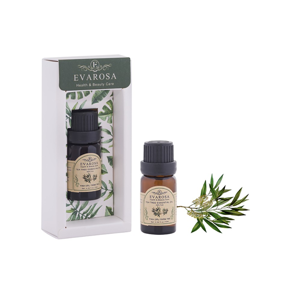 ️MÔ TẢ SẢN PHẨM. Tinh dầu Tràm Trà EVAROSA. Tinh Dầu Tràm Trà Ấn Độ được chiết xuất từ những cây tràm trà có nguồn gốc từ úc, có mùi thơm dễ chịu, chứa những thành phần tuyệt vời có khả năng chữa trị các bệnh gây ra bởi vi khuẩn, nấm. Xuất Xứ: Ấn Độ. Dung tích : 10ml TÁC DỤNG CỦA TINH DẦU TRÀM TRÀ: - Với hương thơm nhẹ nhàng, tạo cảm giác thoải mái, tỉnh táo, giúp bạn có ngày làm việc hiệu quả. XÔNG MẶT VỚI TRÀM TRÀ Ai cũng biết, liệu pháp xông hơi có thể đẩy lùi độc tố và giải phóng các lỗ chân lông trở nên thông thoáng hơn. Để tăng cường khả năng thải độc và điều trị mụn, bạn cũng có thể nhỏ 5-10 giọt tinh dầu tràm trà vào chậu nước hoặc bình xông hơi da mặt và tận hưởng cảm giác thư giãn mà mùi hương của dầu tràm đem lại. Hướng dẫn sử dụng: Xông dầu trong phòng làm việc, phòng ăn, phòng ngủ... Xông, hít, ngửi dầu vào vùng mũi họng. Liệu pháp trị mụn và da nhờn: - Để trị mụn và chăm sóc da nhờn, bạn chỉ cần dùng miếng vải cotton( hoặc tăm bông ) nhúng vào dầu Tràm trà và thoa trực tiếp lên đầu mụn. Ngay cả mụn đầu đen và đầu trắng cũng bị dầu tràm trà loại bỏ dễ dàng. Ban nên thoa dầu tràm trà 2 lần/ngày, trước lúc đi ngủ và sau khi thức dậy vào buổi sáng.Mụn nhanh chóng xẹp và khô - Đối với các vùng da dễ bị mụn như trán, mũi và cằm, bạn thoa dầu tràm trà trực tiếp lên vùng chữ T. Nếu da mặt bị mụn trầm trọng, bạn hãy nhỏ 3 - 4 giọt dầu tràm trà vào sữa rửa mặt và sử dụng hàng ngày. - Mặc dù có chất dầu, dầu tràm trà vẫn không làm da nhờn. Ngược lại, nó còn được da thẩm thấu rất nhanh nên không gây cảm giác khó chịu. Thậm chí, tinh dầu Tràm Trà làm khô làn da bóng nhờn. Làm sạch cơ thể: - Bạn nhỏ 10-12 giọt tinh dầu tràm trà vào bồn nước và ngâm mình. Thực hiện khoảng 30 phút/2 lần/tuần. - Ngoài việc làm sạch, tinh dầu tự nhiên này sẽ giúp cơ thể bạn thư giãn sau khi làm việc hoặc chơi thể thao. Chống hôi miệng, viêm lợi: - Bạn nhỏ 3 giọt tinh dầu tràm trà vào cốc nước ấm. Dùng dung dịch này súc miệng từ 2-3 lần/ ngày. - Tuy nhiên, bạn tuyệt đối không được uống dung dịch này. Ngoài ra, thêm một giọt dầu tràm trà vào kem đánh răng cũng đem lại hiệu quả tương tự. Trị gàu: Dầu gội có chứa 5% tinh dầu tràm trà có thể trị gàu và loại bỏ chấy, giúp phục hồi tóc khô và hư tổn. Tóc giữ được độ ẩm và ngăn ngừa vi khuẩn, nấm tấn công da đầu. Chống nấm bàn chân: Bạn hãy thoa dầu tràm trà vào những vùng da bị nấm để vi khuẩn không lan ra những vùng xung quanh. Dưỡng da: Nhỏ khoảng 10 giọt tinh dầu tràm trà nguyên chất vào mỹ phẩm dưỡng da toàn thân hoặc kem giữ ẩm và sử dụng hàng ngày trước khi đi ngủ. Cách này sẽ giúp bạn có một làn da mềm mại, mịn màng CHÚ Ý KHI SỬ DỤNG: - Đọc kỹ hướng dẫn trước khi sử dụng - Không ăn, uống hay để tinh dầu rớt vào mắt và vùng nhạy cảm - Không bôi tinh dầu vào vết thương hở - Không dùng cho người huyết áp thấp - Phụ nữ mang thai, trẻ nhỏ dưới 6 tuổi dùng theo chỉ định của Bác Sỹ - Không sử dụng dầu nguyên chất trực tiếp trên da. #tinhdautramtra , #tinhdauthiennhien, #tramtra