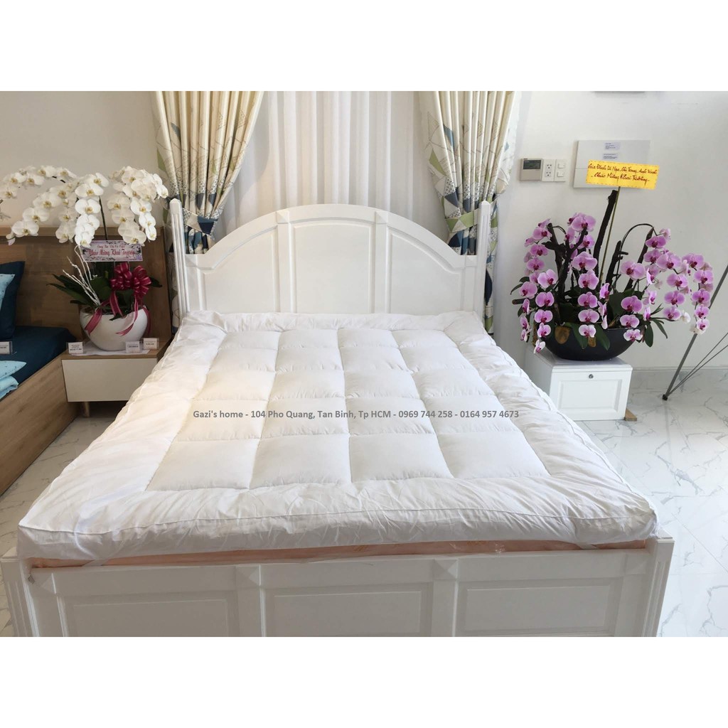 ️?Topper là gì? Topper là một lớp nệm mỏng được trải lên trên tấm nệm nhằm mục đích tăng sự thỏa mái trong khi chi phí rẻ hơn nhiều so với việc mua mới một tấm nệm. Cấu trúc của Topper khá đơn giản với lớp ruột mỏng cùng lớp áo vải bên ngoài. Tại 4 góc còn có thêm các dây đai để cố định topper trên bề mặt nệm một cách chắc chắn. ?Topper của Gazi có đặc điểm gì? ✔️ Dày 5-7cm - Êm hơn, thoải mái hơn. ✔️ Topper được sản xuất từ chất liệu lông vũ nhân tạo, là sợi bông siêu mảnh nên vô cùng êm ái. ✔️ Lớp vải ngoài Cotton 100% cực mềm mịn, thoáng mát. đảm bảo không nóng, bí khi nằm ✔️ Đường may chắc chắn. ✔️ Bề ngoài sang trọng thích hợp mọi không gian, mọi loại giường hay để sàn. ✔️ Màu sắc: TRẮNG, XÁM ✔️ Gấp gọn khi không sử dụng ?Kích thước và giá: ✔️1m x 2m : 760.000đ ✔️1m2 x 2m : 810.000đ ✔️1m4 x 2m : 930.000đ ✔️1m6 x 2m : 1.050.000đ ✔️1m8 x 2m : 1.170.000đ ✔️2m x 2m : 1.290.000đ #Gazishome #homedecor #bedding #topper #tấm_làm_mềm_nệm #tấm_tăng_tiện_nghi #bảo_vệ_nệm...