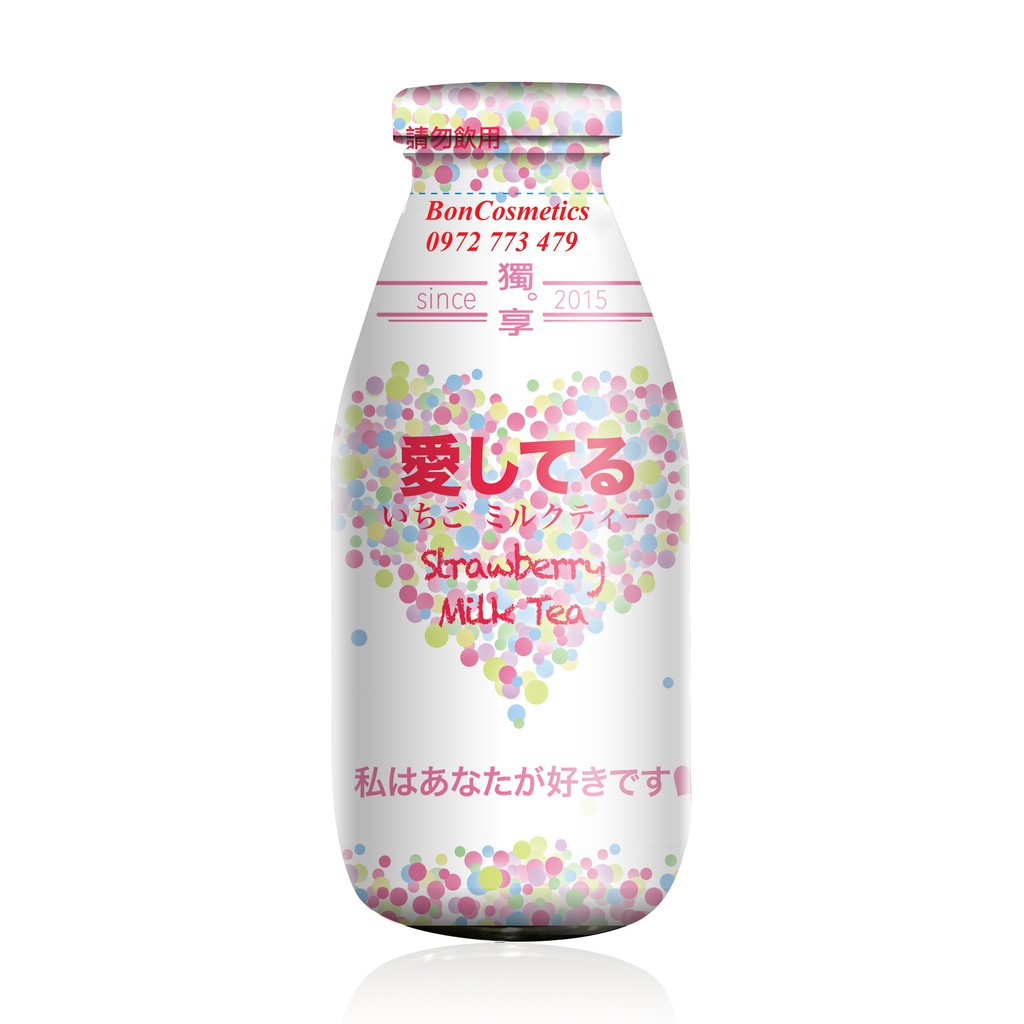 ️Trà sữa Đài Loan luôn nổi tiếng có mùi vị thơm ngon nay còn đóng trong chai xinh xắn đang là trào lưu rất hot hiện nay. Đáp ứng nhu cầu của các bạn trẻ, BonCosmetics đã mang đến các loại trà sữa đóng chai, sản xuất trực tiếp từ Đài Loan, đảm bảo hàng mới thơm ngon, bổ dưỡng để phục vụ các bạn. Trà sữa Đài Loan vị trà đặt trưng hòa quyện cùng vị sữa béo béo theo công thức đặc chế, thơm ngon tới giọt cuối cùng. THÔNG TIN SẢN PHẨM +Thành phần: Nước, đường đen, bột sữa nguyên chất, bột sữa không kem, bột trà đen, casein natri, gia vị dâu, trà đen, kem, Glycerides axit béo, Carboxymethylcellulose, muối, nước ép dâu tây. +Trọng lượng: Chai thủy tinh 290 ml + Công dụng: ăn chơi, tiệc ngọt, sinh nhật, quà tết + HSD: 12 tháng kể từ ngày sản xuất (Xem trên bao bì) + Cách sử dụng: mở nắp, dùng trực tiếp. Ngon hơn khi uống lạnh. + Bảo quản: Bảo quản nơi khô ráo, thoáng mát và tránh ánh sáng mặt trời. #trasua, #trasuadailoan,