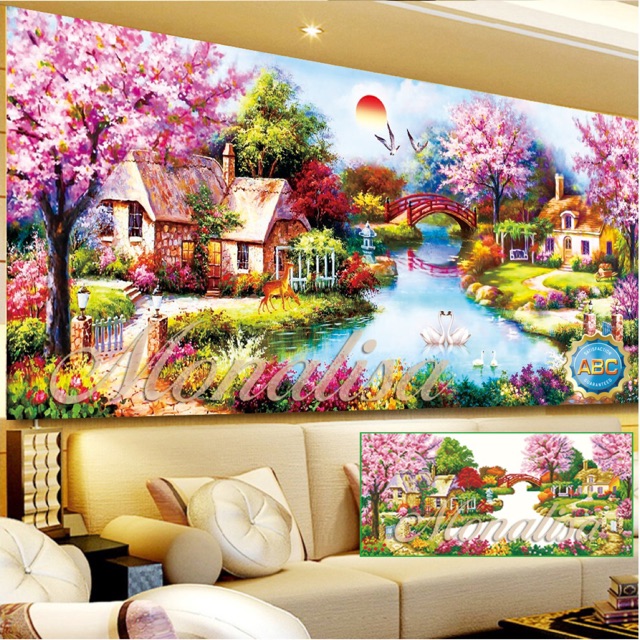 Tranh đính đá phong cảnh tổ ấm hạnh phúc 220x110cm