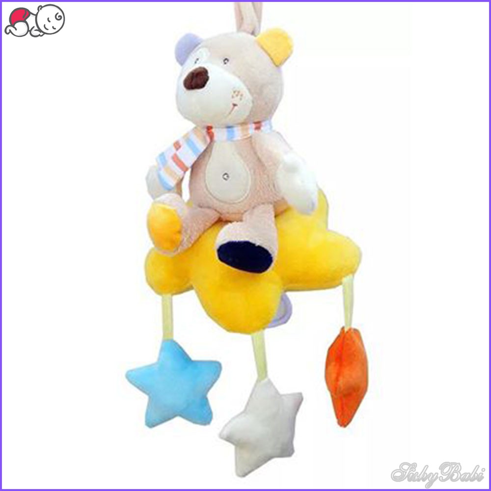 ️Đồ chơi treo nôi thú bông Đồ chơi treo nôi cho bé từ sơ sinh trở lên giúp bé vui chơi và phát triển mọi giác quan của bé. Sản phẩm là đồ chơi vải nhiều tính năng như màu sắc, âm thanh, rèn luyện khả năng cầm nắm của bé. Có thể dùng để treo cũi, giường, nôi, xe đẩy, ghế ngồi cho bé. - Phát triển thính giác: bên trong gấu có bài nhạc dễ thương vui tai khi kéo dây cót phía sau sẽ phát ra âm thanh - Phát triển thị giác: Với tông màu chủ đạo là màu cam và được phân chi nhiều mảng màu sinh động giúp thu hút ánh nhìn cũng như tăng khả năng phân biệt màu sắc của bé. Họa tiết toàn bộ của gấu bông đều được in các đường nét rích rắc, ô voan, chấm bi, kẻ sọc...giúp cải thiện tầm nhìn cũng như tăng khả năng tư duy của bé. - Rèn luyện khả năng cầm nắm ngay từ bé - Chiếc móc xinh xắn phía trên tiện lợi vô cùng có thể dùng làm treo các vào các đồ vật như xe đẩy em bé, ghế ngồi ô tô, giường, nôi, cũi. Đồ chơi thú bông JJOVCE được làm từ chất liệu vải, nhựa an toàn tuyệt đối cho sức khỏe của bé. - Mẫu hộp vuông ko có nhạc nhé các mẹ. #treonoi #treocui #thubong