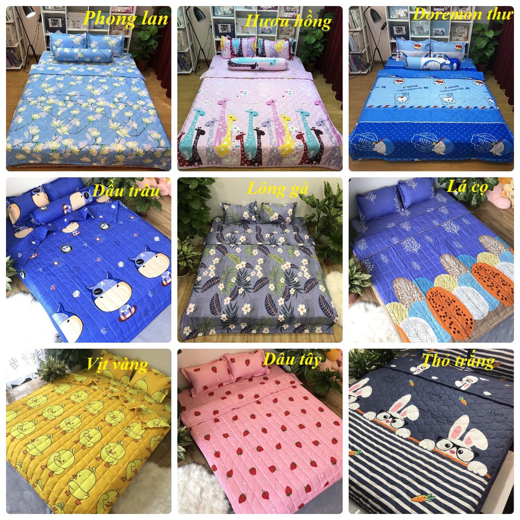 ️Bộ go 1 chăn hè trần bông, 1 ga chun,2 gối nằm Chất cotton poly Giặt máy giặt thoải mái Không vai, không xù, không gião Chăn hè kt m75xm95 Lh 0977055590