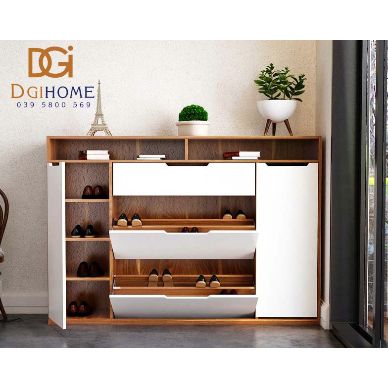 ️Liên hệ: Zalo 0395800569 Chất liệu: Gỗ công nghiệp MDF phủ melamin chống xước Phụ kiện: giá xoay bằng thép sơn tĩnh điện chống gỉ, bản lề inox chống gỉ. Cấu trúc: Gồm 2 tầng và 2 ngăn bên, mỗi tầng 3 ngăn, tủ có hậu rắn chắc. Hai ngăn bên phải được chia làm 4 tầng có thể để mũ bảo hiểm Sức chứa: 35 – 40 đôi giày/dép ( Sneakes,cao gót, giày tây, boots, dép…) Kiểu dáng sang trọng, độ bền cao. Không cong vênh, mối mọt.