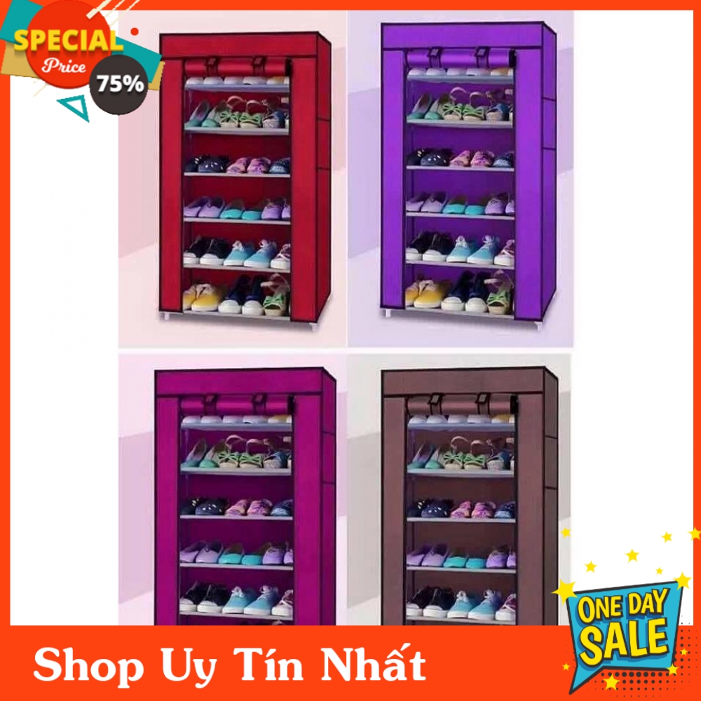 ️???tủ để giầy 7 tầng??? Đây là chiếc tủ tuyệt vời cho các mẹ có nhiều giầy dép, cho những gia đình đông người. ?Tủ thiết kế với 6 tầng rất rộng rãi (50x30x109 cm). ?Khung được làm từ sắt không gỉ, phủ 1 lớp sơn tĩnh điện bên ngoài. Rất bền & chắc chắn nhé. ?Lớp vải ko dệt bên ngoài có tác dụng chống ẩm mốc, côn trùng rất hiệu quả. ???Công dụng là thế, nhưng chiếc tủ lại rất gọn gàng, ko chỉ là để cất giữ giầy dép, mà còn giúp không gian nhà bạn thêm sang trọng nữa nhé. ???Tủ có thể lắp ghép dễ dàng từ các ống thép tháo rời, các chốt nhựa rất chắc chắn. Các bạn có thể di chuyển, mang đi dễ dàng. ???Với chiếc tủ độc đáo này, các mẹ có thể dùng để cất giữ giầy dép, nón bảo hiểm, cất ô (dù), làm giá sách