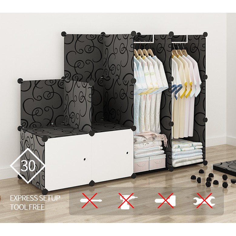 ️Tủ Nhựa Ghép 9 Ô Để Quần Áo Đa Năng Đen Vân Kèm Thêm Thanh Treo ➥ Kích thước sau khi lắp: 165x111x47 cm (cao x rộng x sâu) ƯU ĐIỂM CỦA TỦ NHỰA GHÉP: ➥ Bố trí linh hoạt, tháo lắp dễ dàng ➥ Kết cấu vững chắc mà rất nhẹ, di chuyển thoải mái. ➥ Mỗi ô tủ chịu được tải trọng 10 kg (thoải mái để chứa quần áo/ ruột chăn bông) ➥ Đa dụng: chứa quần áo, đồ chơi cho bé, sách, giầy dép.v.v ➥ Mẫu mã đa dạng, phù hợp nhiều không gian. ➥ Dễ dàng thay thế phụ kiện khi bị hỏng (khác hoàn toàn với tủ vải) Chất liệu tủ: Tủ được lắp từ 3 thành phần chính: (1). Tấm nhựa có khung thép. (2) Chốt. (3) Thanh treo quần áo. (4) Nam châm. (1). Tấm nhựa được làm từ nhựa PP (PolyPropylen) dày từ 0.36-0.4 mm, mềm, dẻo và an toàn cho người sử dụng và môi trường. ➡Không bị bụi mốc, dễ dàng lau rửa khi bị bám bẩn, màu sắc đa dạng: xanh dương, hồng phấn, tím nhạt, vàng chanh.., nhiều mẫu cánh tủ: công chúa, nhân vật hoạt hình, hình ngộ nghĩnh hay màu đơn trang nhã. ➡Không chứa formaldehyde (phoóc môn) và chất gây ô nhiễm, không có mùi nhựa. ➡Khung thép quanh tấm nhựa có đường kính 4mm, được sơn tĩnh điện, bảo đảm chống han gỉ và thẩm mỹ. Khung thép liên kết với nhau qua hệ chốt tạo thành một lưới không gian 3 chiều rất chắc chắn. (2). Chốt được làm từ nhựa ABS (Acrylonitrile Butadiene Styrene copolymers) vô cùng bền bỉ, bảo đảm sự liên kết chắc chắn giữa các khung thép và bền bỉ với thời gian. (3). Thanh treo quần áo được làm bằng thép và sơn trắng tĩnh điện, bảo đảm khả năng chịu lực từ 10-15 bộ quần áo. Màu sắc bảo đảm thẩm mỹ.