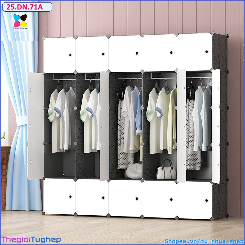 ️Tủ nhựa ghép 25 ô, size to, sâu 47cm chọn mẫu theo phân loại (thân đen cửa trắng, thân màu hồng- xanh - vàng với cửa trắng trong ...) ➥ Kích thước sau khi lắp:180x180x47cm (cao x rộng x sâu) ➥ Trọng lượng: 22.3 kg ➡Tủ ghép đa năng có các ưu điểm: ➥ Bố trí linh hoạt, tháo lắp dễ dàng ➥ Kết cấu vững chắc mà rất nhẹ, di chuyển thoải mái. ➥ Mỗi ô tủ chịu được tải trọng 10kg (thoải mái để chứa quần áo/ ruột chăn bông) ➥ Đa dụng: chứa quần áo, đồ chơi cho bé, sách, giầy dép.v.v ➥ Mẫu mã đa dạng, phù hợp nhiều không gian. ➥ Dễ dàng thay thế phụ kiện khi bị hỏng (khác hoàn toàn với tủ vải) ➥ Bạn được tùy chọn số ô tủ, màu thân tủ, hình cánh tủ, bất kỳ mẫu nào cũng có tủ với số ô, màu sắc và hình cánh tủ bạn muốn. Chất liệu tủ: Tủ được lắp từ 3 thành phần chính: (1). Tấm nhựa có khung thép. (2) Chốt. (3) Thanh treo quần áo. (4) Nam châm. (1). Tấm nhựa được làm từ nhựa PP (PolyPropylen) an toàn cho người sử dụng và môi trường. ➡Không bị bụi mốc, dễ dàng lau rửa khi bị bám bẩn, màu sắc đa dạng: xanh dương, hồng phấn, tím nhạt, vàng chanh.., nhiều mẫu cánh tủ: công chúa, nhân vật hoạt hình, hình ngộ nghĩnh hay màu đơn trang nhã. ➡Không chứa formaldehyde (phoóc môn) và chất gây ô nhiễm, không có mùi nhựa. ➡Khung thép quanh tấm nhựa có đường kính 4mm, được sơn tĩnh điện, bảo đảm chống han gỉ và thẩm mỹ. Khung thép liên kết với nhau qua hệ chốt tạo thành một lưới không gian 3 chiều rất chắc chắn. (2). Chốt được làm từ nhựa ABS (Acrylonitrile Butadiene Styrene copolymers) vô cùng bền bỉ, bảo đảm sự liên kết chắc chắn giữa các khung thép và bền bỉ với thời gian. (3). Thanh treo quần áo được làm bằng thép và sơn trắng tĩnh điện, bảo đảm khả năng chịu lực từ 10-15 bộ quần áo. Màu sắc bảo đảm thẩm mỹ. (4) Nam châm được gắn vào chốt tại vị trí cửa để giữ cánh cửa khi đóng. Phụ kiện tủ 25 ô bao gồm: 1. Tấm thân 45x35 cm: 60 cái 2. Tấm lưng 35x35 cm: 25 cái 3. Cánh cửa 35x35 cm: 25 cái 4. Chốt : 72 cái 5. Nam châm: 50 cái 6. Thanh treo quần áo: 5 cái 7. Búa gỗ để lắp tủ: 1 cái 8. Hướng dẫn lắp tủ: 1 tờ 9. Bảng kê số lượng phụ kiện tủ: 1 tờ #tunhuaghep #tunhuaghepdanang #tunhuaghepthongminh #tunhualapghep #tughepdanang #tunhuathongminh #tuquanaosinhvien #tu #tuquanao #tuao #tughepchobe #tunhuaghepchobe #tunhualapghepchobe #tughepgiare #tunhuaghepgiare #tunhualapghepgiare