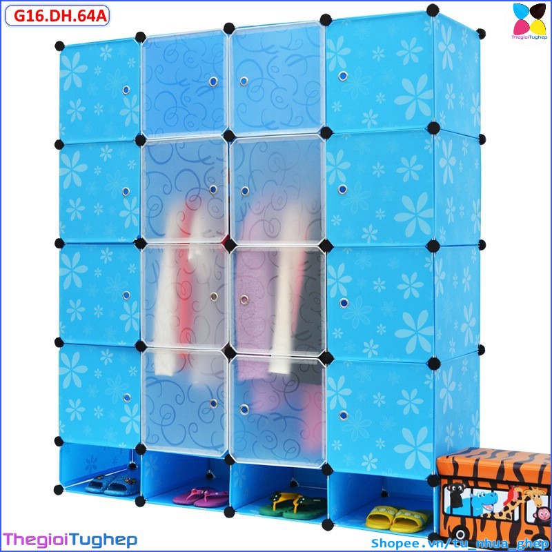 Tủ nhựa lắp ráp 16 ô và 4 ô giầy sâu 47cm chốt nam chân đen trắng ngẫu nhiên