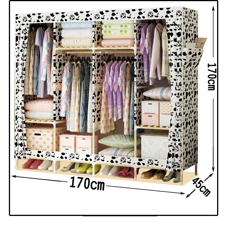 ️các bạn đặt tủ vui long chọn nhà vận chuyển giaohangnhanh hoặc vnpt post, viettel post giup shop nhé , nhà vận chuyển giaohangtietkiem không nhận giao sản phẩm này Giới thiệu sản phẩm Tủ vải khung gỗ cao cấp loại lớn Ngày nay, tủ vải khung gỗ là một trong những vật dụng được nhiều gia đình sử dụng để đựng quần áo do sự tiện dụng và thiết kế họa tiết đẹp, cho không gian nhà bạn luôn ngăn nắp. Tủ vải khung gỗ thông minh được thiết kế gồm 4 buồng, có khóa kéo an toàn và kín đáo, là một trong những sự lựa chọn hoàn hảo cho bạn cất giữ đồ đạc gọn gàng Thông tin sản phẩm Tên sản phẩm: Tủ vải khung gỗ cao cấp 4 buồng cực lớn Thiết kế : Hiện đại đơn giản, 4 buồng 8 ngăn, 4 ngăn treo lớn phù hợp từ 3 – 4 người sử dụng Kích thước : 170cm (rộng ) x 45cm ( sâu ) x 170cm ( cao) Kết cấu : Khung gỗ đường kính 20mm, cực chắc chắn. Là khổ khung gỗ lớn và tốt nhất hiện nay Giá đỡ ngăn đồ gấp : Bằng vật liệu gỗ, cực chắc chắn Vải : được làm từ sợi vải không dệt, rất chắc chắn Màu sắc : Rất nhiều màu sắc lựa chọn cùng họa tiết đa dạng