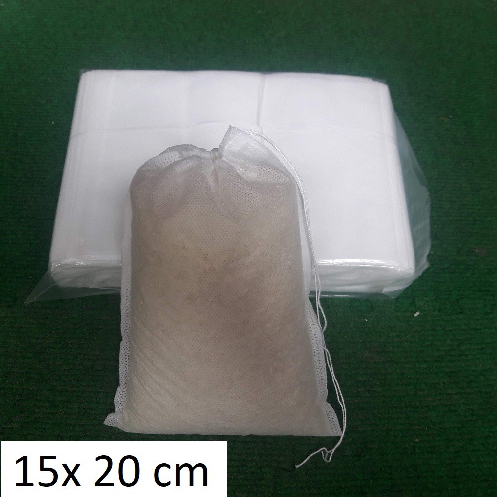 ️Sản phẩm gồm 100 chiếc túi lọc trà, kích thước 15x20cm. Khách hàng vui lòng cân nhắc kỹ về kích thước trước khi mua. MÔ TẢ SẢN PHẨM: -Chất liệu vải không dệt. -Có dây rút miệng túi. -Túi dùng 1 lần. -Đảm bảo không bị lọt bột ra ngoài kể cả khi đun. Shop có quay video thử đựng bột cà phê và đun sôi trong 5 phút, khách xem video ở phần hình ảnh phía trên nhé. -Tự phân hủy, không ô nhiễm môi trường. -Một túi đựng được khoảng 820ml, nếu là gạo thì khoảng 665g. CÔNG DỤNG: Trong đông y, túi được dùng để đóng gói các loại thuốc ngâm chân, thuốc sắc. Nhà thuốc dùng túi này đựng sẵn từng toa, khách hàng về chỉ việc đun sôi là dùng, vệ sinh nồi niêu cũng dễ dàng hơn. Túi đặc biệt phù hợp với những shop làm thảo dược gội đầu như bồ kết, chanh, sả... Shop đóng gói sẵn từng túi, khách đem về chỉ thả nước đun sôi là dùng. Khách hàng hay dùng túi này để lọc trà hoặc cafe, có thể làm sẵn trước nhiều túi xong khi dùng chỉ lấy ra châm nước sôi là dùng được. Các loại trà giảm cân đa phần đều cần nghiền thành bột nên sẽ phù hợp với loại túi này. Với người trồng cây thì nó rất tiện, dùng để đựng phân bón và để lên mặt chậu. Nhờ chiếc túi này mà bã phân bón không lẫn vào trong đất, giữ đất sạch và thông thoáng. Nhờ chiếc túi này mà người ta dễ dàng thay loại phân, thêm hoặc bớt phân tùy theo nhu cầu cây. Nhiều người chơi cây lá kim giàu kinh nghiệm đã dùng loại túi này thay cho cách dùng giỏ phân hoặc bón trực tiếp vào đất. Shop có 6 cỡ túi lọc có dây là 5,5x7 6x8 9x10 10x12 10x15 15x20 và 3 cỡ túi lọc không dây là 6x8 10x12 10x15. Túi không dây có thể hàn miệng bằng các loại máy hàn nhiệt thông dụng. Khách hàng xem trong danh sách sản phẩm của shop nhé. Shop không gộp làm 1 sản phẩm dù như vậy có lợi hơn cho shop do tăng được lượng doanh số bán ra nhưng sẽ thiệt thòi cho khách vì mỗi sản phẩm có cân nặng khác nhau, gộp lại thì khách sẽ luôn phải trả tiền vận chuyển cho loại to nhất, nên phí ship của khách sẽ cao hơn.