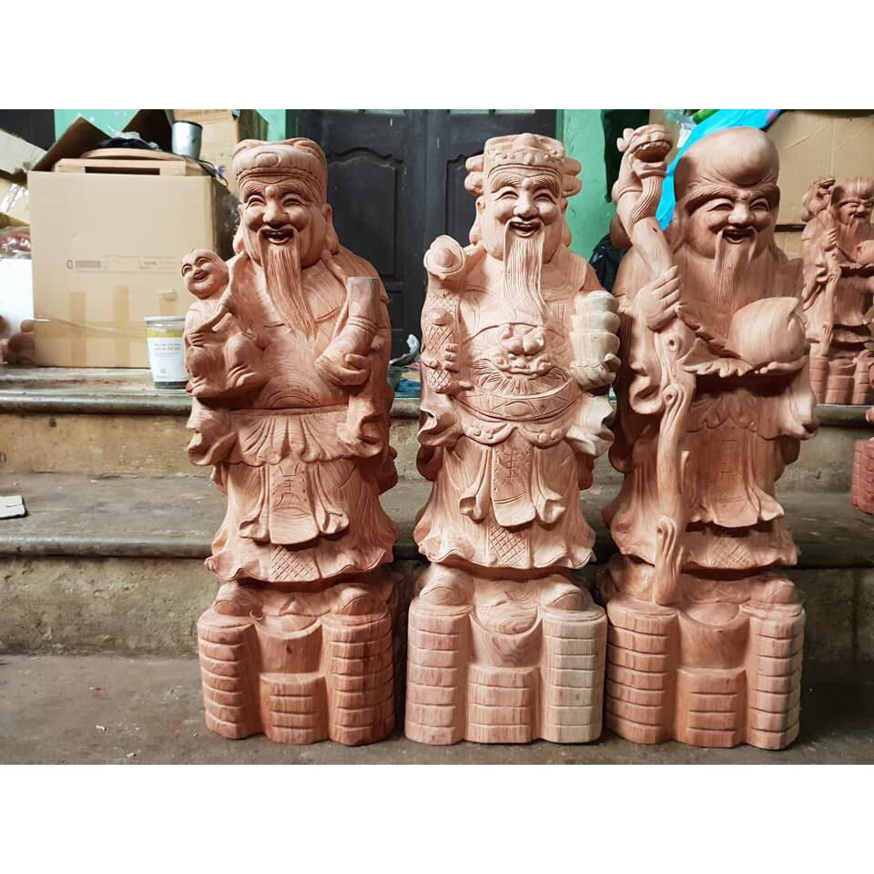 ️TƯỢNG TAM ĐA PHÚC LỘC THỌ BẰNG GỖ HƯƠNG Giới thiệu sản phẩm Bộ Tượng Tam Đa Phúc Lộc Thọ (Gỗ Hương Đỏ) Ông Tam Đa là tên gọi khác của ba vị thần Phúc, Lộc, Thọ. Cùng tìm hiểu ý nghĩa và cách trưng bày ba vị thần này trong nhà hoặc văn phòng hợp phong thủy nhé! Trường thọ, danh tiếng và tiền tài chính là ba yếu tố tốt đẹp nhất của vận may mà con người luôn tin tưởng sẽ có được nhờ Phúc, Lộc, Thọ - ba vị thần đại diện cho lĩnh vực tài lộc. Giống như hầu hết các giải pháp phong thủy, ba vị thần Phúc, Lộc, Thọ mang đến những điều mà con người hy vọng trong nhiều thế kỷ qua, đó là sự giàu có, quyền lực và may mắn bên cạnh cuộc sống khỏe mạnh và lâu dài. Tượng ba vị thần Phúc, Lộc, Thọ khi nhìn vào không giống với một giải pháp phong thủy mà là một cái gì đó sẽ mang lại may mắn, sự giàu có và hạnh phúc, đương nhiên còn có cả sức khỏe tốt và thành công. Vì vậy, về mặt này có thể nói rằng ba vị thần Phúc, Lộc, Thọ đáp ứng cùng một mục đích giống như các giải pháp phong thủy tài lộc phổ biến khác. Phúc, Lộc, Thọ - ba vị thần biểu tượng cho sự may mắn, giàu có và tuổi thọ. Ba vị thần Phúc, Lộc, Thọ có điểm gì khác nhau➥ Tại sao bạn nên chọn ba vị thần đại diện cho vận may (còn được gọi là ba vị thần thông thái hoặc ba vị thần bất tử) để trưng bày trong nhà hoặc văn phòng làm việc➥ Ba vị thần này có được con người thờ cúng hay không➥ Có nguyên tắc nào cần tuân theo ghi trưng bày tượng thần Phúc, Lộc, Thọ hay không➥ Hãy cùng khám phá. Câu chuyện về ba vị thần Phúc, Lộc, Thọ Theo nhiều nguồn phong thủy khác nhau, có rất nhiều truyền thuyết về ba vị thần Phúc, Lộc, Thọ. Một trong những truyền thuyết phổ biến nhất dựa trên niềm tin rằng ba vị thần chính là hiện thân của những năng lượng thiên đường cụ thể đã có sẵn vì lợi ích của con người. Phúc thần chủ về may mắn, sức khỏe và hạnh phúc. Tương truyền, ông Phúc là một quan thanh liêm của triều đình. Theo quan niệm xưa, nhà đông con là nhà có phúc nên đôi khi còn thấy có một đứa trẻ đang nắm lấy áo ông Phúc, hoặc nhiều đứa trẻ vây quanh ông hay là có hình ảnh con dơi bay xuống ông (dơi phát âm giống "phúc"). Sự hiện hữu của ba vị thần Phúc, Lộc, Thọ đảm bảo cho gia chủ sức khỏe, sự thịnh vượng và tài lộc. Lộc thần hay Thần Tài chủ về sự giàu có, thịnh vượng. Theo truyền thuyết, ông Lộc được sinh tại Giang Tây, sống trong thời Thục Hán của Trung Quốc, ông còn là một quan lớn của triều đình, có nhiều tiền của. Ông thường mặc áo màu xanh lục vì trong tiếng Hoa, "lộc" phát âm gần với "lục", hoặc thường có một con hươu đứng bên cạnh (hươu cũng được phát âm giống "lộc"). Thọ thần chủ về sự sống lâu. Vị thần này gắn liền với hình ảnh là một ông già râu tóc bạc trắng, trán hói và dô cao, tay cầm quả đào, bên cạnh thường có thêm có con hạc. Cách trưng bày tượng ba vị thần Phúc, Lộc, Thọ ✔️ Ship hàng toàn quốc. nhận hàng thanh toán tiền. ✔️ Để được tư vấn tốt nhất vui lòng liên hệ: ☎️: 0964 .604 .400 Zalo : 0964 .604 .400 Xưởng sản xuất : Làng nghề gỗ Thường Tín -Hà Nội