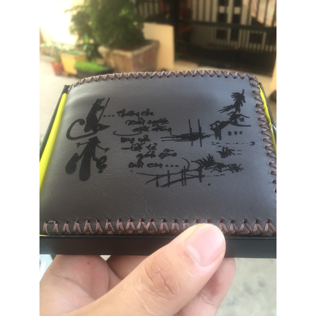 ️Ví da nam Ví ngang HANMADE - Khâu Tay da bò nguyên miếng - da CLASSIC (fullbox), da bò thật 100%. Mẫu mã đơn giản nhưng sang trọng, độ bền cao 5 - 7 năm, Bảo Hành 1 năm (1 đổi 1). Sản phẩm gia công tay tại xưởng đảm bảo chất lượng từng chi tiết. Đây là món quà đầy ý nghĩa cho bạn bè, cha mẹ, người thân hoặc sử dụng cá nhân để mỗi khi chỉ tiêu tiền bạc chúng ta nhớ đến sự lam lũ của cha mẹ để có cách sử dụng tiền hợp lý. Công nghệ khắc laze tiên tiến đảm bảo không bay màu, phai mờ, chất lượng hình ảnh đẹp.Nhận hàng, kiểm tra hàng đúng da bò 100% mới thanh toán tiền!
