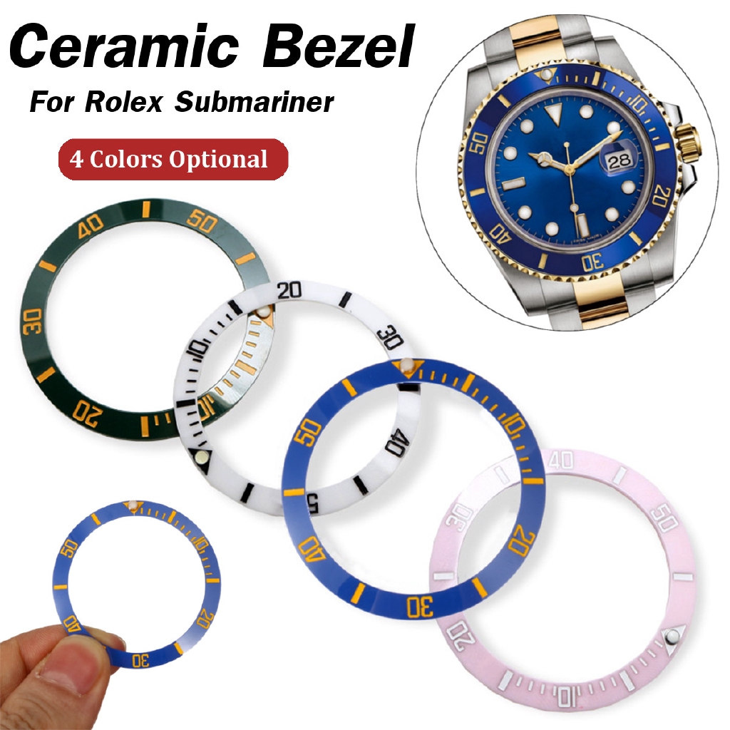 ️38mm Black Blue White Pink Ceramic Bezel Insert for Rolex Submariner Mens Watch Description: Type:Watch Bezel Material:Ceramic Color:White+Black,Pink+White,Blue+Gold,Black+Gold Size:(approx.) Inner Diameter 30.7mm/1.21" Outer Diameter 38mm/1.5" Thickness:1.65mm/0.07" (1cm=10mm=0.39inch) Measurement Details in the attached picture. Package Included: 1x Ceramic Bezel (Not included with the watch) Features: - High quality ceramics. - Fits most Rolex watch. - Engraved tachymeter scale. Notice: 1.The real color of the item may be slightly different from the pictures shown on website caused by many factors such as brightness of your monitor and light brightness. 2.Please allow slight deviation for the measurement data. 3.Please allow 1-3cm error. If you have any questions, please contact us. Wish you have a happy shopping time!