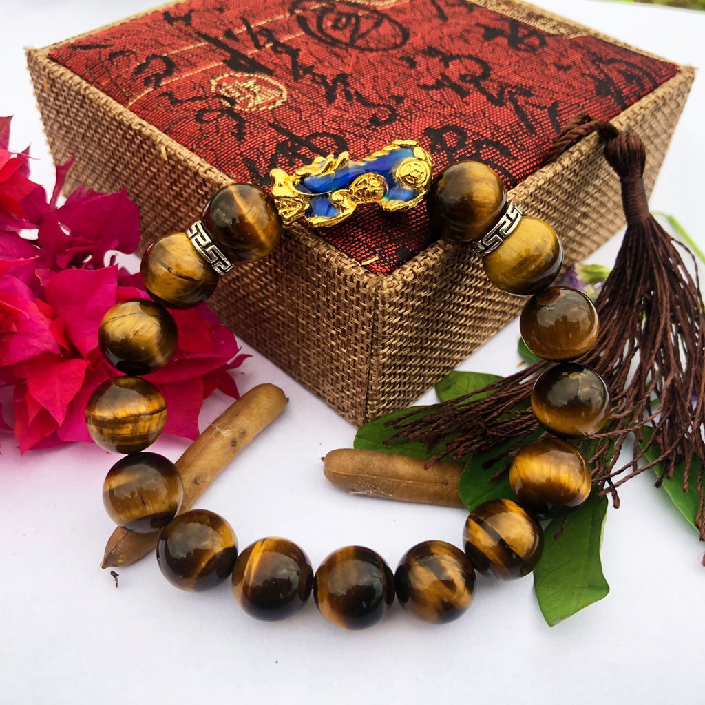 Vòng Tay Tỳ Hưu Vạn Sắc Đá Mắt Hổ Vàng Nâu