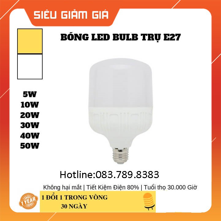 ️BÓNG ĐÈN LED TRỤ TRÒN CÔNG NGHỆ MỚI NHẤT - ÁNH SÁNG TRẮNG/VÀNG TỰ NHIÊN Bóng đèn LED cao cấp với vỏ nhựa chống cháy, chip ánh sáng LG mới nhất và hạt LED nhập khẩu từ Hàn Quốc - tuổi thọ 50.000 giờ hoạt động - Bảo hành: 12 tháng - Loại đuôi ren E27 - Điện áp đầu vào: 220V - Công suất: 5W - 10W - 15W - 20W - 30W - 40W - 50W-100W - Màu sáng: 36 mắt Ánh sáng trắng/vàng(6500/3000)#bóngđènledtrụtròn #đèn_led_20w #đèn_bulb_led_30w #led_trụ_tròn #ledbulb #led_giá_rẻ #led_trụ_20w #led_búp_30w #led_20w#led_trụ_tròn_30w #Bongdenled #Denledbulb #ledbulb #ledbulbtru #ledbulbchongnuoc #denledchongnuoc #ledbulb5w #ledbulb7W