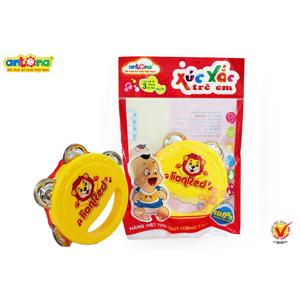 ️Đặc điểm nổi bật: + Sản phẩm Xắc xô ANTONA của Công ty Đồ Chơi An Toàn Việt Nam được làm từ 100% nhựa nguyên sinh, đảm bảo tuyệt đối an toàn cho bé khi vui chơi, đặc biệt là khi bé cầm, nắm và gặm sản phẩm. + Các chi tiết được thiết kế không có ba via, các cạnh sắc đều được vê tròn, đảm bảo an toàn cho trẻ khi sử dụng. + Màu sắc đa dạng, phong phú và rất bắt mắt với trẻ nhỏ. + Hình ảnh thiết kế với các nhân vật vô cùng ngộ nghĩnh và đáng yêu là Chú Sư Tử Đỏ ANTONA và chú Ếch xanh. + Âm thanh có độ lớn vừa phải, phù hợp với thính giác của trẻ. + Sản phẩm gọn, xinh xắn, vừa với tay cầm của trẻ. Lợi ích mang lại: Trong quá trình chơi với sản phẩm Xắc xô ANTONA, bé sẽ học hỏi thêm được những kỹ năng và kiến thức cần thiết cho sự phát sau này của bé. +Bé tập nhận biết màu sắc: Sản phẩm có nhiều mẫu mã với nhiều màu sắc sinh động khác nhau, bắt mắt. + Bé phát triển khả năng cầm, nắm đồ vật: Bố mẹ sẽ cho bé chơi bằng cách dạy bé tập cầm, nắm, và lắc xúc xắc. + Bé tăng cường khả năng vận động: Xúc xắc sẽ chỉ phát ra âm thanh khi được chạm vào. Nếu muốn nghe âm thanh của đồ chơi, trẻ cần phải chạm được vào xúc xắc hoặc cầm và lắc nhẹ. Điều này sẽ giúp bé phát triển hoàn thiện hơn trong những vận động đơn giản.