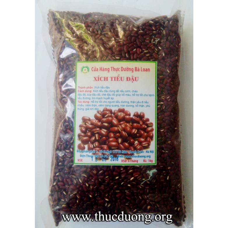 ️Xích tiểu đậu 1kg Bà Loan Thành phần: Xích tiểu đậu (đậu đỏ) Công dụng: Bổ thận, tráng dương. Rất tốt cho người bị thận yếu đi tiểu nhiều, tiểu rát, sỏi thận, viêm thận, bàng quang, tiểu đường, ung nhọt. Giảm cholesterol. Cách dùng: Trước khi nấu hoặc rang, phải luộc hoặc ngâm nước sôi 5 phút rồi bỏ nước đầu. Có thể nấu với gạo lức theo tỳ lệ 1 nắm đậu 1 chén gạo. HD: 6 tháng kể từ NĐG